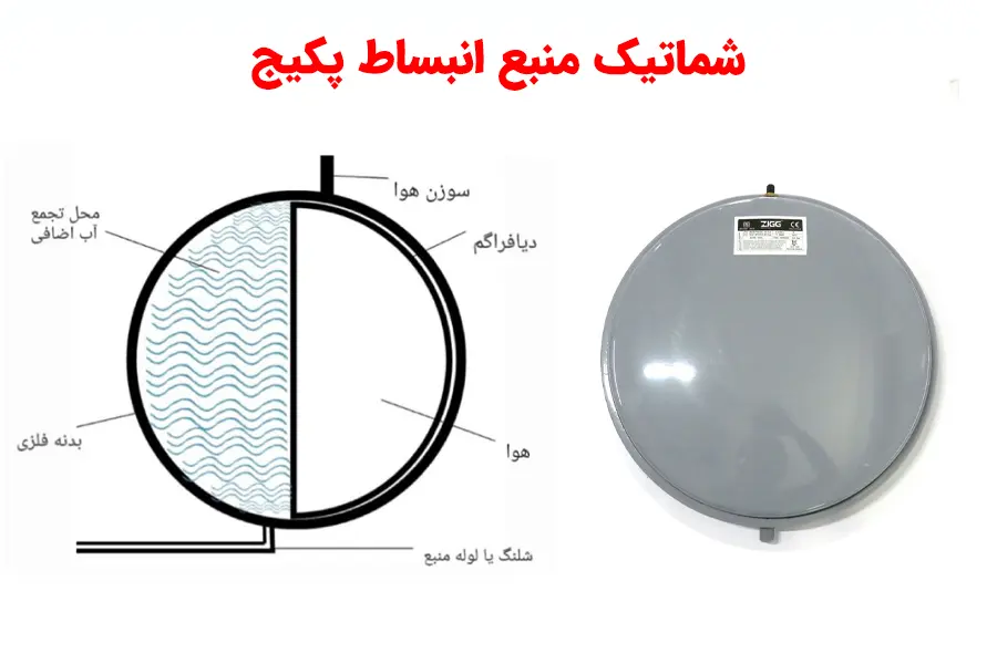 منبع انبساط، قطعه ای گرد و گاهی به شکل مستطیل و استوانه بوده که در تمامی پکیج ها تعبیه شده است و فشار آب را در پکیج ثابت نگه می دارد.
